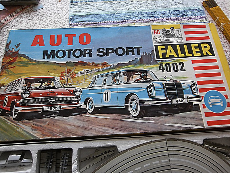Heute hatte ich einen guten Grund zum jubeln, denn ich habe ein Teil meiner Jugend wieder bekommen. Es handelt sich dabei um eine Faller AMS Startpackung Nr. 4002. Mit dieser Packung habe ich im Jahr 1964 mit Faller AMS angefangen. Nur hatten meine Autos damals eine andere Farbe, so war der Mercedes in blau und der Opel Kapitän in rot.
