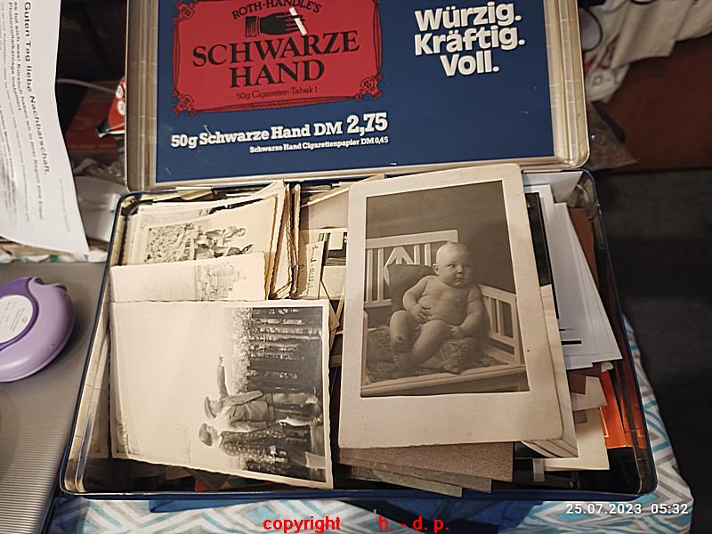 In den letzen Tagen hat meine Frau angefangen den Wohnzimmerschrank und das Sideboard aufzuräumen, denn es ging fast nichts mehr rein. Dabei kam auch diese Kiste mit alten, teilweise uralten Bildern zum Vorschein.