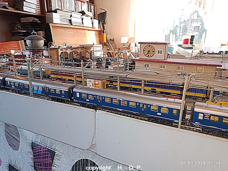 mein heutiger Spieltag steht unter dem "Europa zu Gast in Heinhausen Teil 1 " Teil 1 aus dem Grund weil ich in meiner Sammlung recht viele Modelle, Loks und Wagen von Europäischen bahnen besitze und ich möchte Euch die in den nächsten Wochen gerne zeigen, denn einmal im Jahr sollen alle Loks und auch Wagen einmal auf meiner Anlage fahren. Alle Loks und Wagen stammen aus dem Haus Märklin.