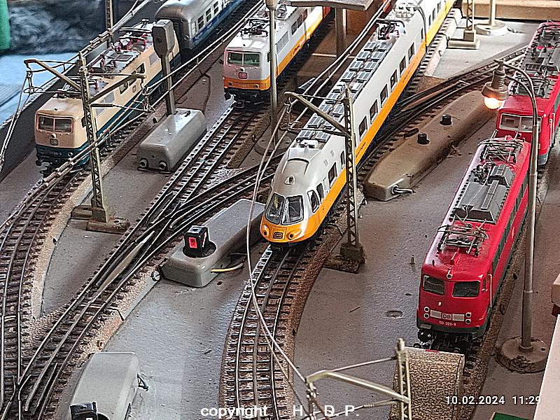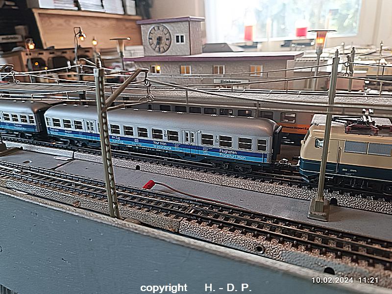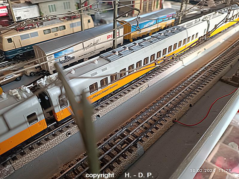 Ich habe diese  Zuggarnituren auf meiner Anlage Heinhausen nachgestellt, allerdings fehlt mir noch die Garnitur mit der BR 103 und so sind nur der ET 403 von Lima und 2 x die BR 111 von Märklin im Einsatz. Auch das Wagenmaterial stammt aus dem Hause Märklin.