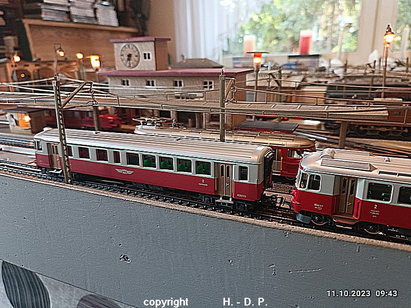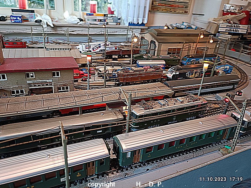 Die Loks stammen von den Firmen Märklin und Hag und von diesen beiden Firmen stammten auch alle Wagen.