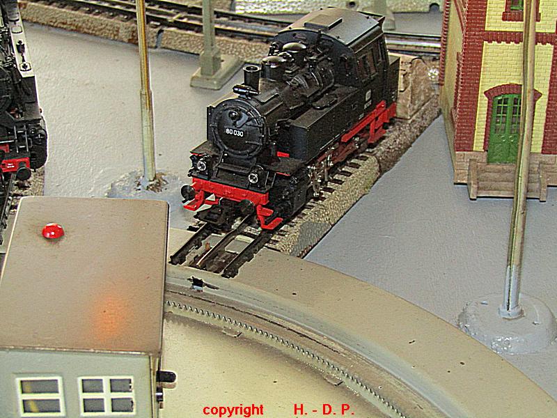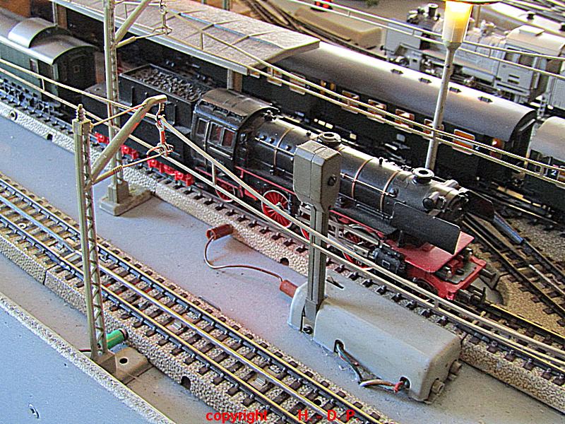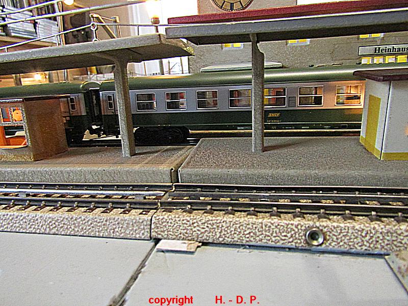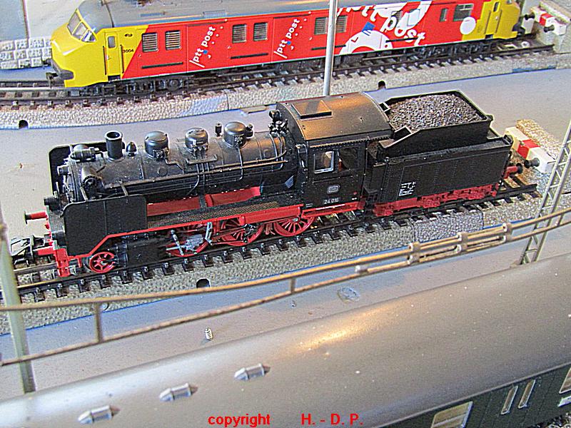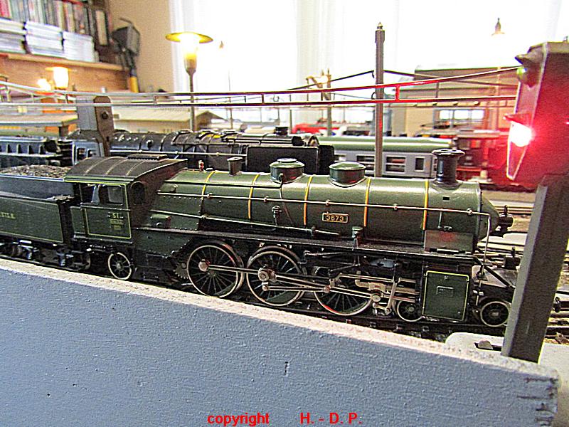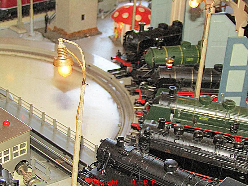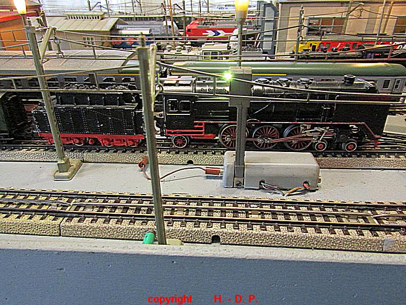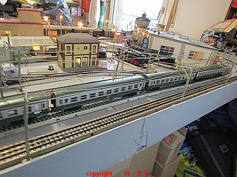 Mein Orientexpress wurde von der S 3/6 der SNBC gezogen und auch diese schöne Belgierin steht fast nur in der Vitrine und die sollte nun auch mal Auslauf erhalten. Weiter waren auf den Gleisen unterwegs eine V 200 mit Umbauwagen, ein Nachkriegs Eilzug mit BR 23, eine Französische E - lok mit Blechwagen der SNCF, ein Eilzug der DRG mit BR 01 HR 800 und ein Bayerischer Zug mit der grünen S 3/6. In den BW`s standen auch nur Loks die sekten zum Einsatz kommen, darunter auch einige moderne E - Loks.