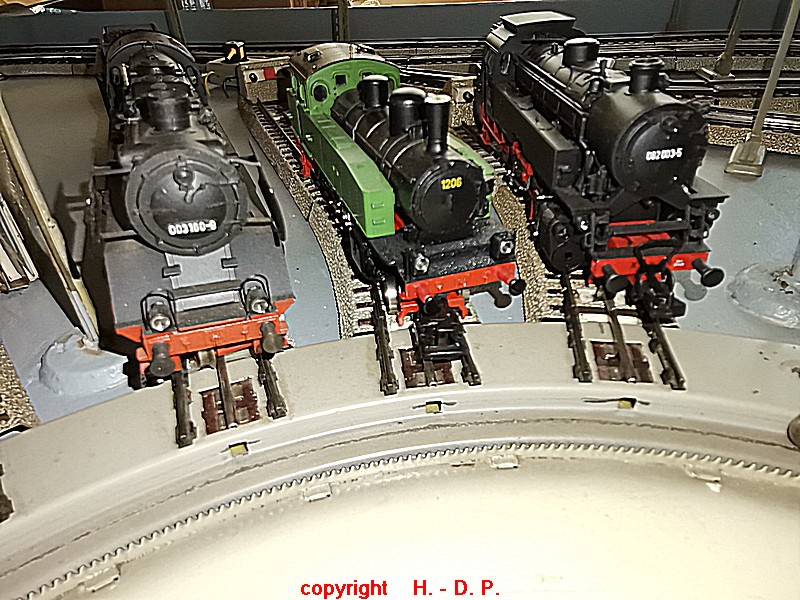da waren unterwegs ein Zug gezogen von einer Piko BR 82 ein Zug aus Shell und Aral Kesselwagen, ein weiterer Zug gezogen von einer Märklin BR 50 mit Esso Kesselwagen und ein von einer GFN BR 55 gezogener Zug mit gemischten G Wagen auch aus der Märklin 4500 G Wagen Serie.