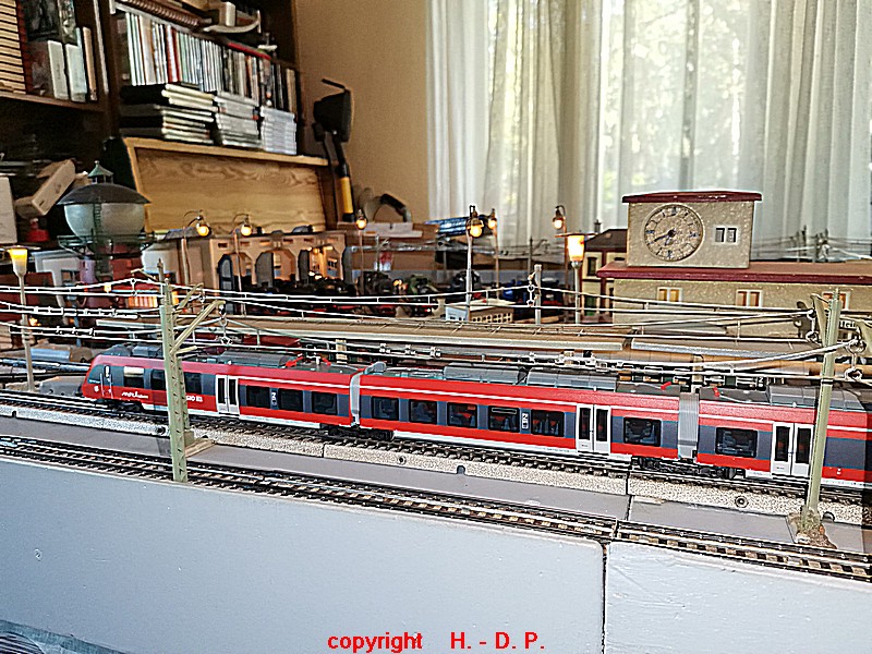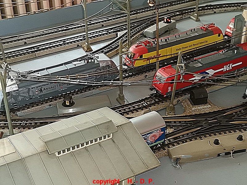 da waren auf der Anlage unterwegs ein Kühlwagen Zug gezogen von einem Piko Taurus, ein Bananenwagen Zug gezogen auch von einem Piko Taurus und die Wagen beider Züge haben sich gefruet über die poko Lok und die haben nicht die Nase gerümpft so wie einige andere Leute. Als Eilzug war auch noch der Märklin "Bamberger" der Zugpackung 26541