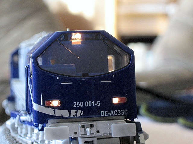 Sonst macht das Modell einen recht guten Eindruck auch das Gewicht ist ganz ordentlich. Das ist ein erster kurzer Bericht über den Blue Tiger, wie er sich im täglichen "Einsatz" bewährt werde ich später einmal berichten, auch was die Zugkraft angeht. Die Beleuchtung wechselt übrigens von 3 x Weiß auf 2 x rot, was aber nur sehr schwach scheint, aber man kann es sehen.