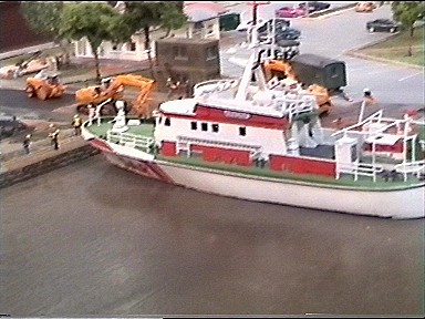 die nächsten Bilder zeigen noch eine Hafenanlage und eine eine Holzeisenbahn, wo auch die Schienen aus Holz bestehen