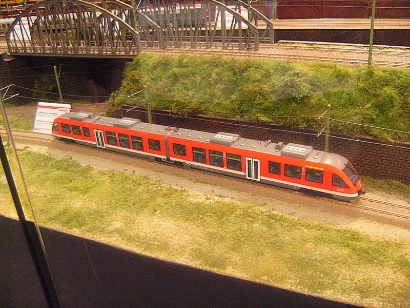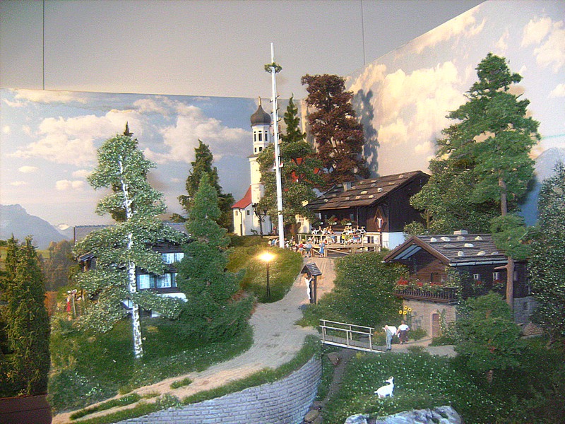 Zu den Anlagen muß ich sagen das die an sich nicht schlecht waren aber es fehlte eine Anlage wo man sagen könnte woh das ist es. Auch gab es sehr viele kleine Anlagen Dioramen zu sehen. Die Anlage des Modellbau Team Köln z.B. hätte der Höhepunkt sein können, wenn dort nur etwas mehr Zugbetrieb zu sehen gewesen wäre. Diese an , sich recht hohe Anlage war wohl für die Firma Bemo gebaut, hatte aber trotz der Größe nur ein Gleis drauf das zu einem Bahnhof in ungefähr Anlagen Mitte führte zu einem kleinen Bahnhof mit Ausweichgleis. es fuhren dort nur zwei Züge und das fand ich persönlich etwas wenig, denn sonst gab es dort nur Landschaft zu sehen, die aber natürlich in hervorragender Qualität gebaut war, so wie man es von den Kölnern gewohnt ist.