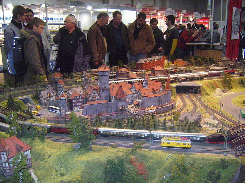 Dann habe ich mir die Auslagen beim Märklinstand angesehen und die Anlagen. Zu sehen gab dort einige Anlagen und ein Diorama von Trix mit den Stahlwerks Gebäuden. Ach eine kleinere LGB Anlage war dort zu sehen. Dann ging es weiter zu Fleischmann und den anderen Bekannten Firmen, bevor ich mir die Anlagen angesehen habe.