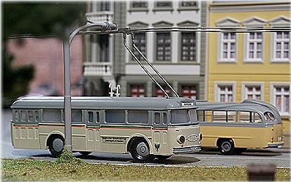 ![]() der Obus in Spur N links ein Handmuster, rechts das Serienmodell |