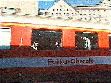 Begleitet ihn auf der Fahrt von St. Moritz nach Zermatt. Ich wünsche eine gute Fahrt. Bitte zurücktreten an der Bahnsteigkante, der langsamste Schnellzug der Welt fährt ab