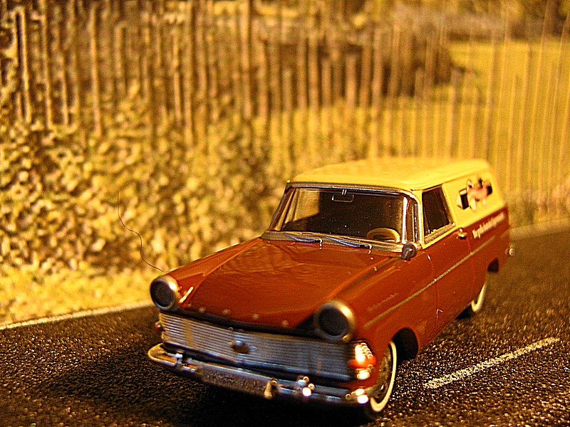 Alle Bilder wurden mit einer Canon Powershot A 410 mit 3,2 Megapixeln gemacht. Der Hintergrund stammt von einem Kalender und die Fahrzeuge stehen auf einer Dachlatte, die ich aber für das Bild mit dem Opel mit einem Stück Busch Straßenfolie beklebt habe, was nach meiner Meinung besser aussieht. Beleuchtet wurde das ganze mit 2 x Halogenstrahlern a. 150 Watt