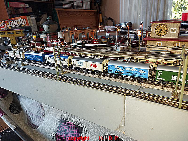Heute steht mein Spieltag unter dem Motto " Bier her Bier her oder ich fall um " Jetzt werden wohl einige fragen was soll der Scheiß der alte Sack trinkt doch kein Bier. Ja das ist richtig, aber am letzten Freitag wollte ich alle meine Bierwagen mit zum MIST 47 nehmen und die da als langen Zug oder auch 2 Zügen fahren lassen, was aber leider nicht möglich war, da unser Hans - Gerd wegen dem schweren Unwetter nicht kommen konnte und ich meine Schienen nicht innerhalb von wenigen Stunden noch sortieren und reinigen konnte. Aus dem Grund habe ich jetzt einmal alle meine 56 Bierwagen in Heinhausen fahren lassen.