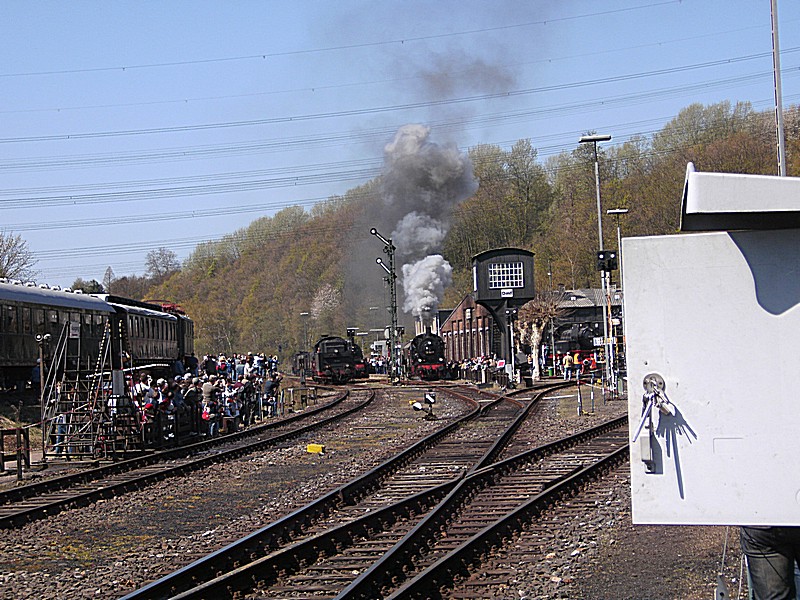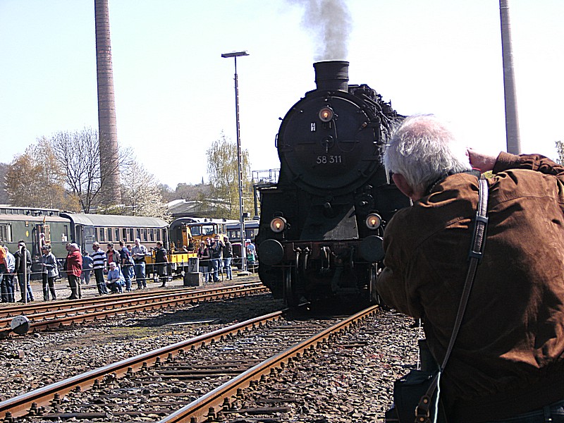 Unter Dampf standen heute die BR 38, BR 58, BR 78 und die BR 75. Diese Loks waren abwechselnd eingesetzt für den Pendelzug zum S-Bahnhof, dem Hbf und als Führerstandsmitfahr Lok. Ich habe heute nicht soviele Bilder gemacht wie sonst, denn das Meiste kennen die Leser meiner Seite ja schon seit Jahren. Auch wurde es ab ca. 11 Uhr brechendvoll dort und man konnte kaum eine Lok auf SD Karte bannen ohne das Leute mit auf dem Bild waren.