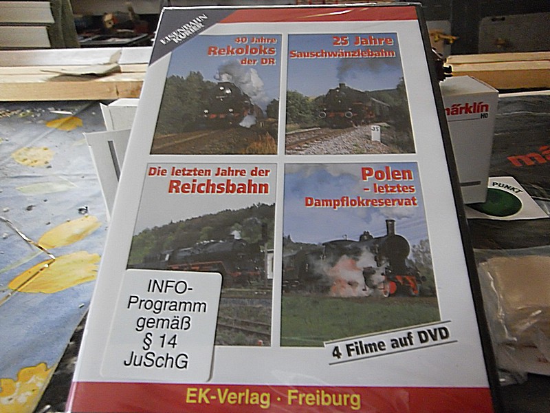 Auf der Suche nach den Anlagen, kamen wir auch am Ek Stand vorbei und dort habe ich mir ein Sonderangebot gegönnt, eine DVD mit 4 Filmen drauf und einer Laufzeit von mehr als 3 Stunden für 9,80 €. An einem kleinen Stand habe ich mir dann auch noch etwas zum Schienenreinigen gekauft. Das war das teuerste und hat 25 € gekostet, ist aber nach meiner Meinung das Geld wert.