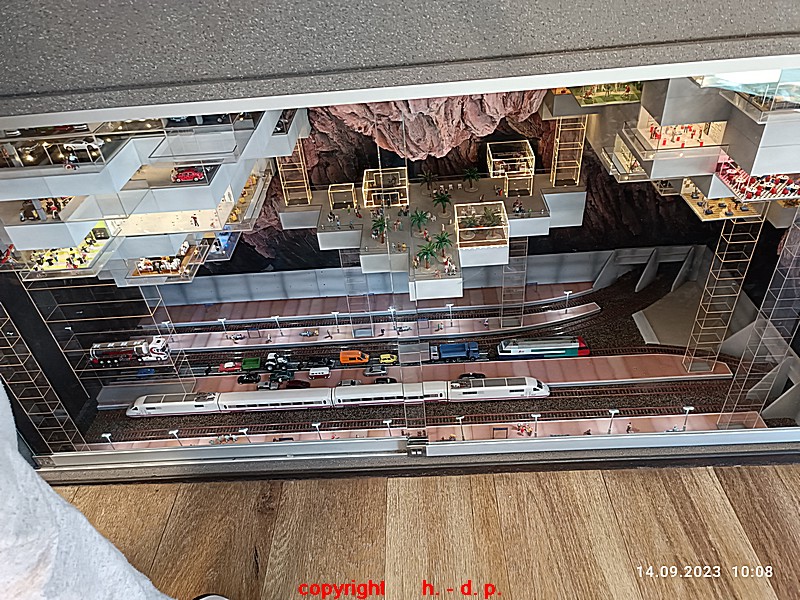 Dann mußte ich mich sehr beeilen um den Zug noch rechtzeitig zu erreichen, aber der Aufzug war außer Betrieb so das ich mit meiner Umhängetasche und dem Rollator die Treppen benutzen und dann noch wegen der Baustelle einen großen Umweg machen., so das ich es nur ganz knapp geschafft habe und mir dabei die Zunge aus dem Hals hing und ich ca. gute 15 Minuten benötigte bis ich wieder normal Luft bekam und da saß ich schon im Zug, der mit nur 2 oder 3 Minuten Verspätung abfuhr. In HH hatte unser Zug ca. 15 Minuten Verspätung und so kamen wir noch rechtzeitig zu unserer gebuchten Einlasszeit im MiWuLa an.