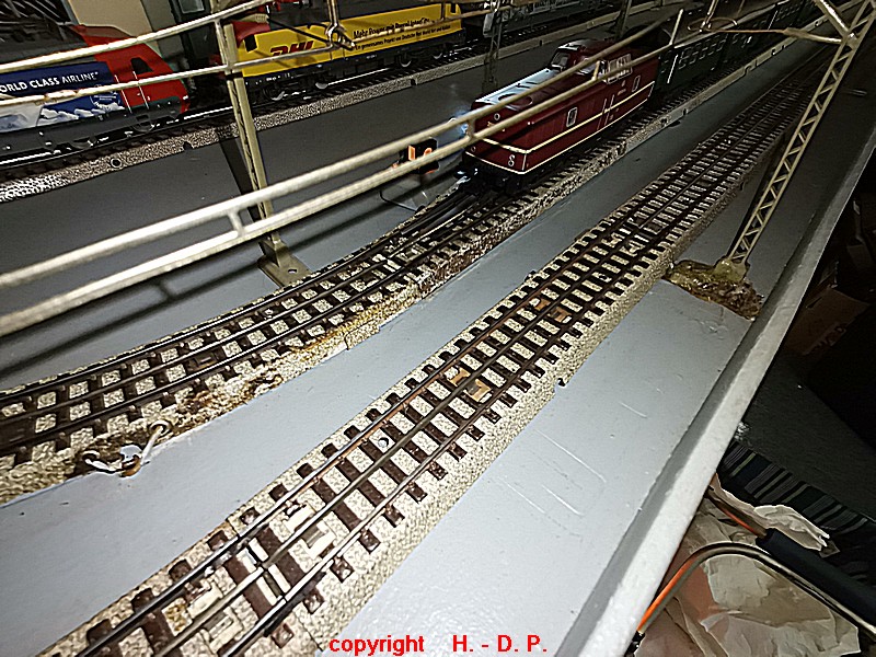 da waren unterwegs ein Zug gezogen von einer Piko BR 82 ein Zug aus Shell und Aral Kesselwagen, ein weiterer Zug gezogen von einer Märklin BR 50 mit Esso Kesselwagen und ein von einer GFN BR 55 gezogener Zug mit gemischten G Wagen auch aus der Märklin 4500 G Wagen Serie.