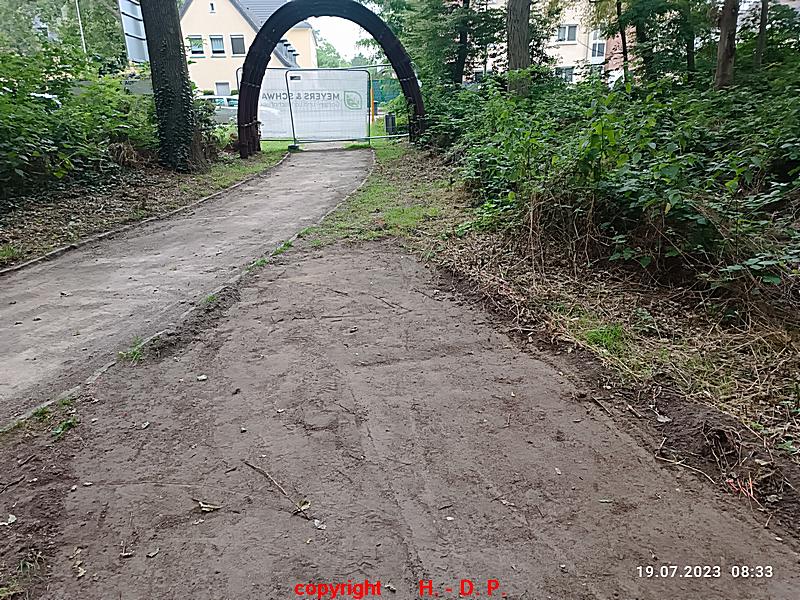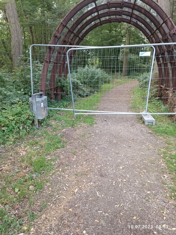 Seit  guten 2 Jahren wird der Sportplatz nun umgebaut und auch das Wäldchen soll verschönert werden. Zuerst hatte man uns Hundefreunden den Rundgang über eine Wiese genommen, denn ganz plötzlich stand da ein Zaun und unser Rundgang war keiner mehr.    Als ich am 10.07.2023 morgens gegen 8:30 Uhr meine tägliche Runde mit meiner nun schon 18 Jahre alten Hündin machen wollte, waren plötzlich beide Eingänge zu dem Wäldchen mit Gittern verschlossen und das ohne eine Vorwarnung. Ich bin nicht der einzige der dort täglich seine Runde dreht und so waren an diesem Tag auch noch andere Hundebesitzer unterwegs und standen vor den verschlossenen Eingängen. Es wurde allgemein geflucht und geschimpft und ich möchte nicht die Worte wiedergeben die da geäußert werden. Auch ich habe mich furchtbar aufgeregt, denn wenn irgendwo z.B. für eine bestimmte Zeit ein Halteverbot eingerichtet wird stehen die Schilder schon einige Wochen vor dem Tag da und es steht auch dran ab wann das Halteverbot gültig ist. So kann sich jeder danach richten nur die Stadt Moers hat das wohl nicht nötig.