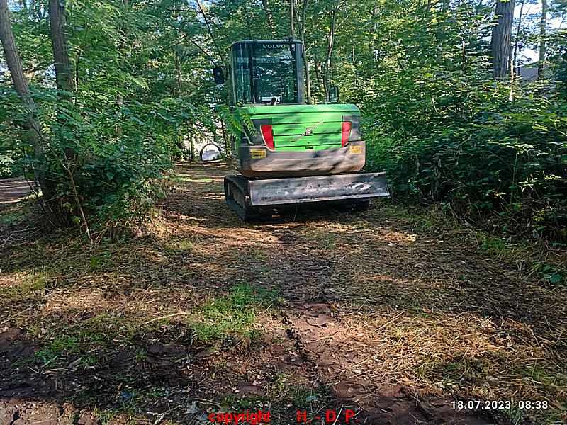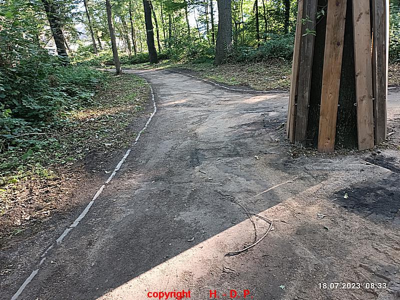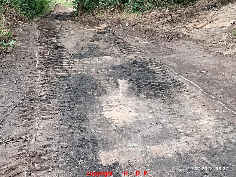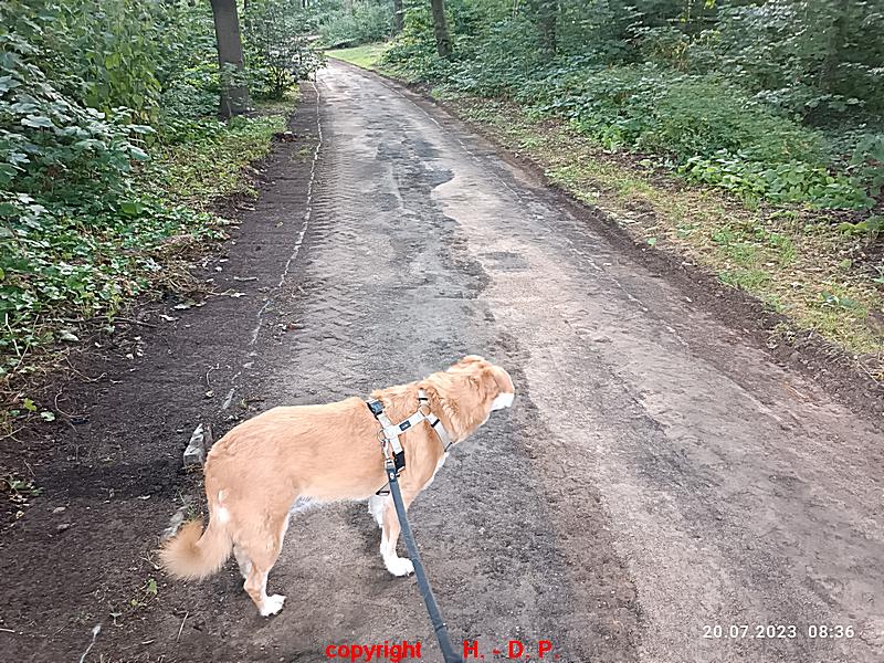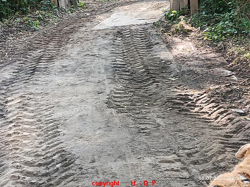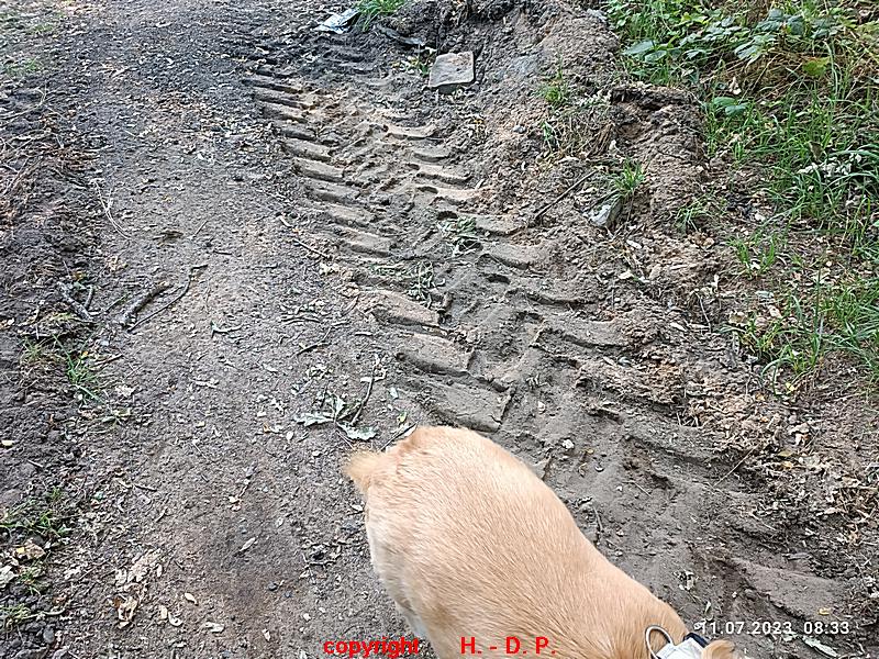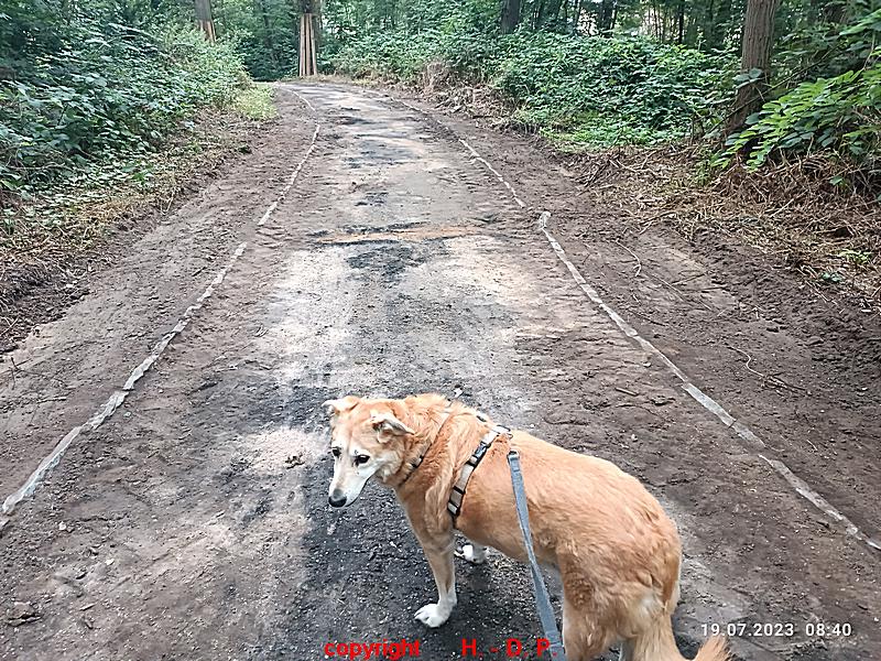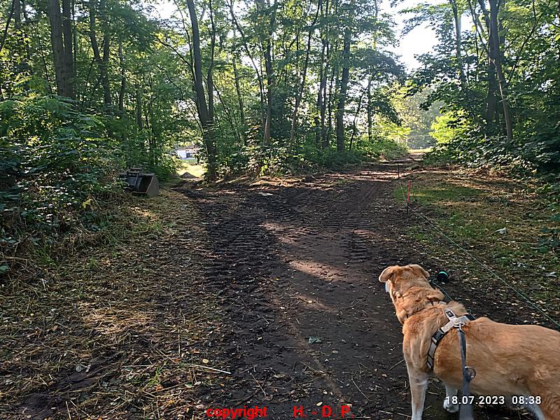Wie schon geschrieben ist meine Hündin Lady jetzt 18 Jahre alt und sie hat es genau so wenig wie ich verstanden das die Eingänge zum Wäldchen geschlossen waren und ich hatte große Mühe sie weiter zu ziehen und das ist bei 25 Kg gar nicht so einfach, vor allen Dingen dann wenn man an einem Rollator geht. Ich wußte aber das es noch einen dritten Eingang gibt und der ist neben dem Kindergarten und dahin habe ich meine Lady dann gezogen und ich hatte richtig gedacht, dieser Eingang war nicht gesperrt und dieser Eingang dürfte auch nicht gesperrt werden weil das jetzt die einige Möglichkeit ist das Wohnhaus das sich in dem Wäldchen befindet , zu erreichen. Ich gehe auch weiterhin in das Wäldchen, trotz großer Schwierigkeiten beim laufen, denn der Radlader macht die Waldwege richtig kaputt, aber ich sehe es einfach nicht ein meinen Hund an einen anderen Weg zu gewöhnen.