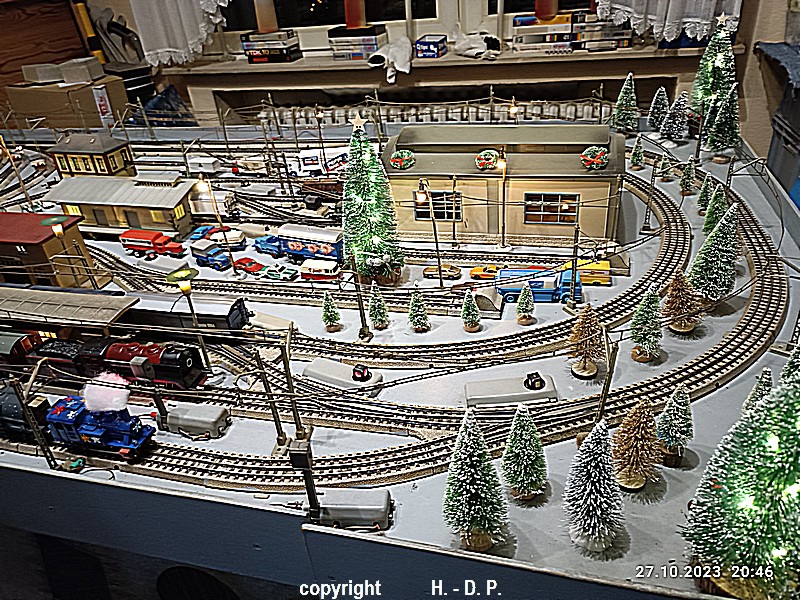 Im hellen sehen die teilweise klobigen Sockel natürlich nicht sooooo sehr gut aus, aber im Dunklen sieht man die ja nicht. Für das ganze Tannenset habe ich im letzen Jahr 19,98 € gezahlt und in dem Beutel waren immerhin 140 Deko Tannen in verschiedenen Größen drin und dafür dürfen auch die Sockel mal etwas klobig sein, aber ich finde das es doch ganz gut aussieht. So Heinhausen wurde jetzt aufgeforstet und ab Mitte November geht es weiter.