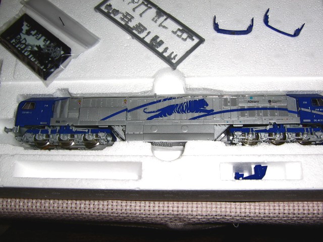 Es ist eine, ich glaube der Lok entsprechend, komische Verpackung - oder sagen wir einmal beide sind gewöhnungsbedürftig. Also die Verpackung aufgeklappt und gesucht wie ich an die Lok rankam.