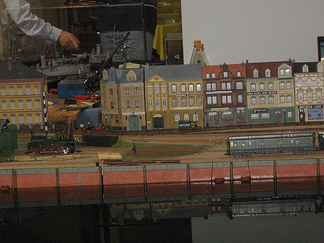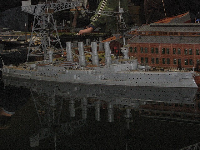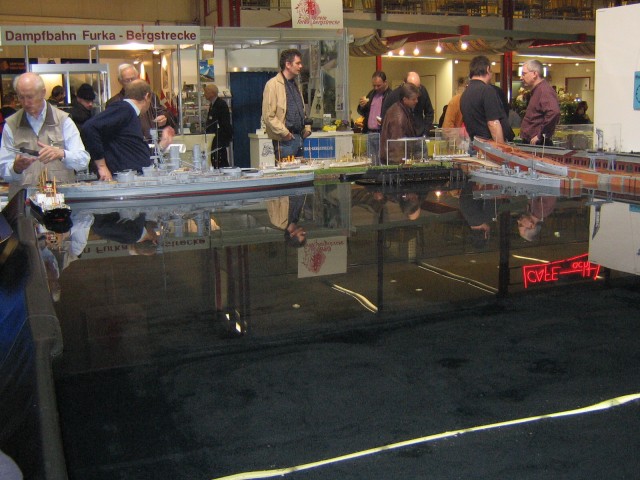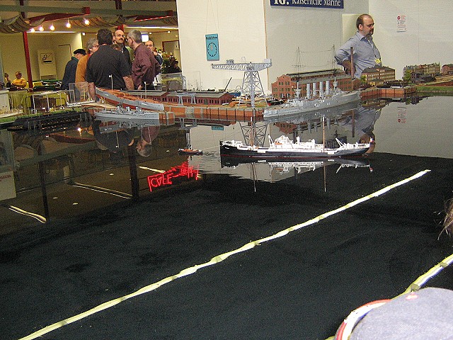 Eine ebenfalls klasse Anlage, aber mit einem ganz anderen Thema zeigten die Freunde der "IG Kaiserlichen Marine". Nun wird sich wohl manch ein Modellbahner fragen Kaiserliche Marine, sind das nicht Schiffe ?? Richtig und falsch, aber seht es Euch selber an.