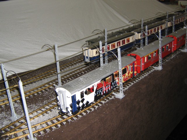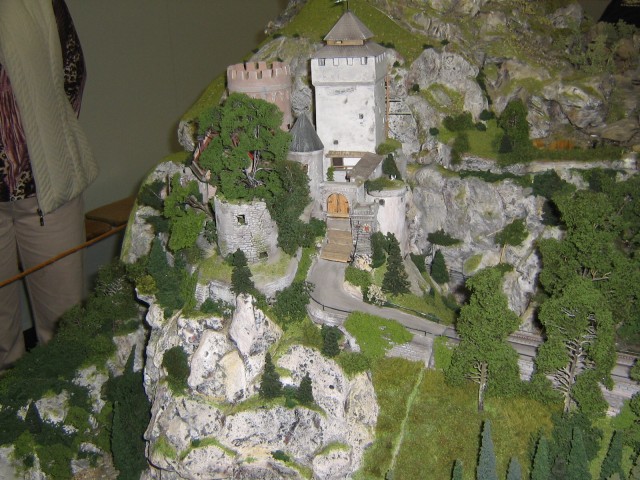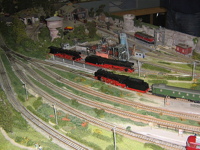 Jetzt möchte ich Euch zwei Anlagen zeigen die nach meiner Meinung, total aus dem Rahmen gefallen sind und ich meine auf solche Anlagen können wir auf Ausstellungen gut verzichten. Die erste Anlage ist eine LGB Anlage. Sie bestand aus 2 Ovalen und in der Mitte aus einem weißen Betttuch das wohl einen verschneiten Berg darstellen sollte. Die zweite Anlage, ja welche Spurweite die hatte weiß ich einfach nicht, da ich nur 1,70 m groß bin konnte ich da nichts drauf erkennen. Die Anlagenoberkante war genau so hoch wie meine Nase .- nicht das Ihr meint ich trage meine Nase sehr hoch - nein diese Anlage war unmöglich hoch, so das die Betreiber auf kleinen Leitern stehen mußten wenn sie etwas, z.B. aufgleisen wollten. Das so etwas für Kinder, die ja unsere Zukunft sind, unmöglich istm dürfte wohl jedem klar sein.