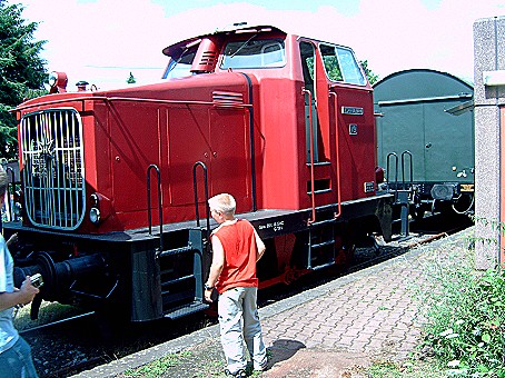Heute, am 30.07.2005 war ich mit meiner Frau beim Lokfest der Hespertalbahn in Essen - Kupferdreh. Gegen 11:00 Uhr sind wir in Moers abgefahren und gegen 12:00 Uhr waren wir an Ort und Stelle. Leider war noch nicht sehr viel Betrieb, so das der Wurstverkäufer seine Würste selber essen mußte.