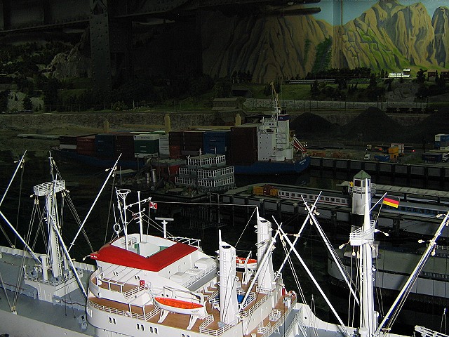 Nach dem wir problemlos in das Wunderland rein gekommen waren, führte uns unser erster Weg in den neuen Skandinavien Teil. Es war ein unbeschreiblicher Eindruck den wir bekamen. es war einfach umwerfend was man da alles sehen konnte. Leider fuhr nur ein Schiff auf dem Wasser aber auch die Boote die am Kai festgemacht waren sind erstklassig gebaut, was ich als ehemaliger RC Schifflebauer recht gut beurteilen kann.