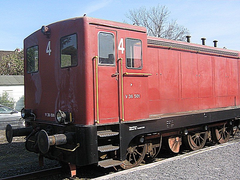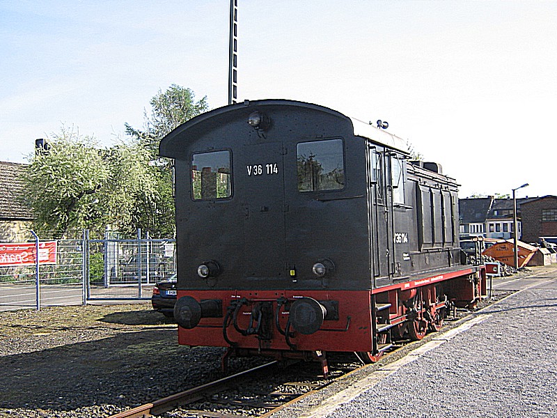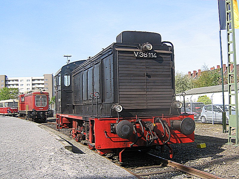 Unter Dampf stand die wohl einzige Betriebsbereite BR 78. Diese Lok sollte ansich mit einem Sonderzug eine Fahrt von ca. einer Stunde machen, doch leider mußte diese Fahrt ausfallen, da an der Lok etwas defekt war. So konnte sie nur noch für Führerstandsfahrten eingesetzt werden. Das BW Krefeld besitzt einen großen Bestand an Wagen, die fast alle einsatzbereit sind. An Loks waren ausgestellt: Ein Schienenbus, 2 x V 36 und ein Turmtriebwagen. Im Lokschuppen selber, der 12 Stände hat, gab es noch eine E-Lok des Orientexpress zu sehen, wo das Gehäuse an einem Kran hing und man die Drehgestelle sehen konnte. Auch eine im Privatbesitz befindliche BR 52, ein Schrotthaufen, war dort zu sehen. Wie man mir sagte soll diese Lok aber wieder fahrfertig aufbereitet werden.