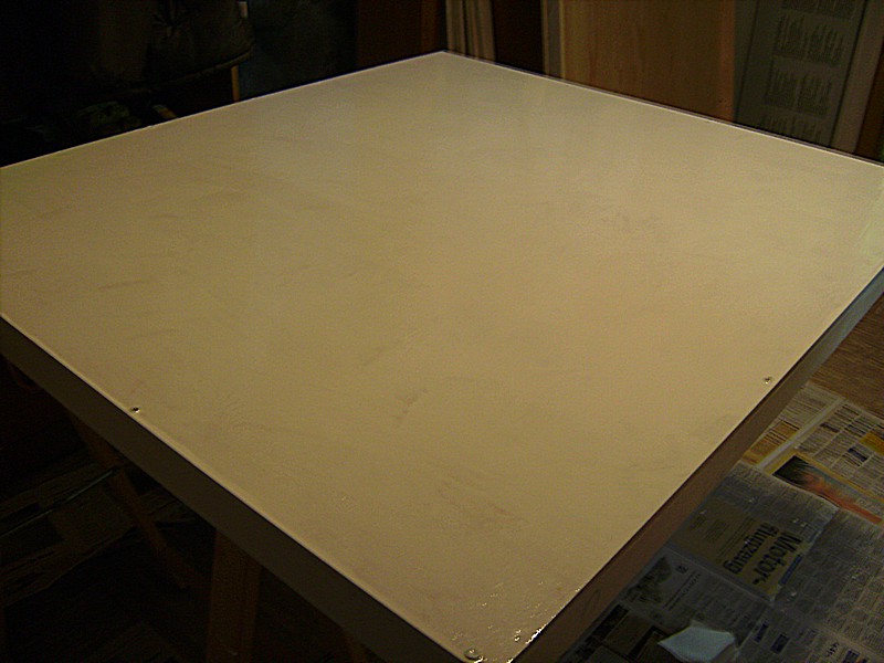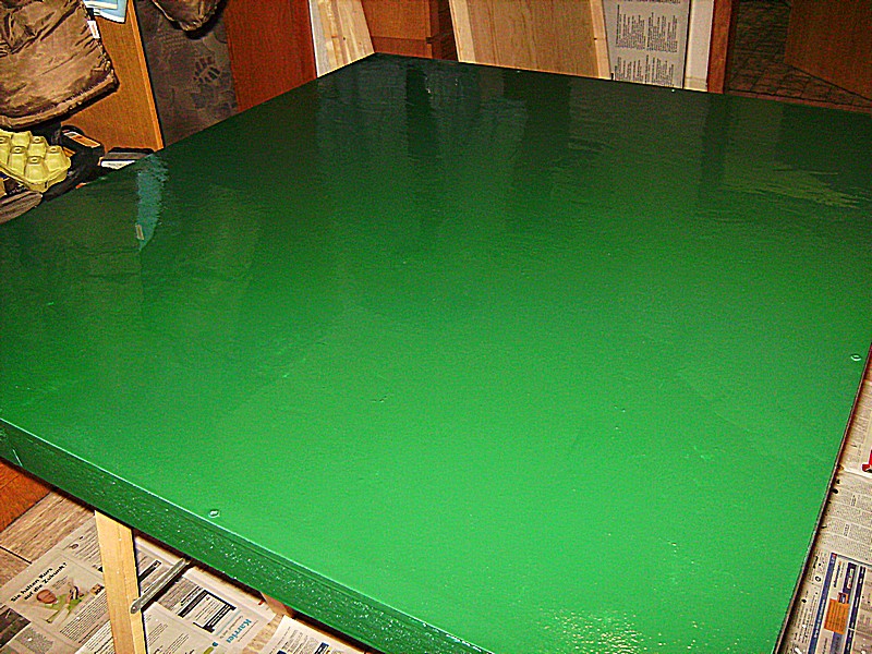 Ich habe die Platten ganz bewußt grün gestrichen, weil auf der alten Platte wo die Grasmatte drauf war es immer Ringe gab, weil Getränke drauf gestellt wurden. Diese Ringe kann ich jetzt abwaschen.