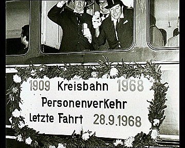 Ab 1962 kamen auch Dieselloks auf der Kreisbahn zum Einsatz und der Kohletransport stellt auch heute noch eine rentable Einnahmequelle für die Kreisbahn dar. Ab 1921 setzet man im Personenverkehr auch Triebwagen ein, die teilweise Eigenbauten der Kreisbahn waren. Den größten Boom erreichten die Kreisbahn nach dem 2. Weltkrieg durch die Hamsterfahrten, so wurden von 1946 bis 1949 7 Mio Menschen mit der Kreisbahn befördert. Ab 1953 gingen die Fahrgastzahlen stetig zurück, durch die zunehmende Motorisierung und ein stetig ausgebautes Busnetz im Kreis Moers, damit war das Ende des Personenverkehrs vorprogramiert. Als die Moerser Kreisbahn ( KMV ) 1967 in die Niederrheinische Verkehrs AG  ( NIAG )aufging war das Ende bereits beschlossen und am 28.9.1968 wurde der Personenverkehr ganz eingestellt, bis dahin wurden insgesamt ca. 50 Mio Menschen befördert.
