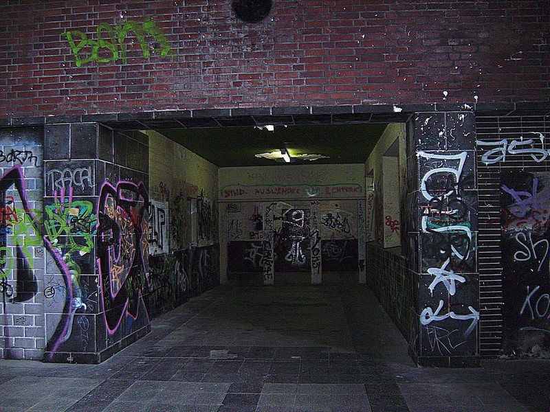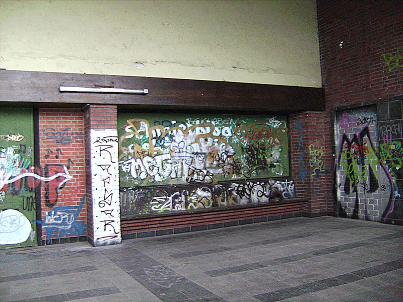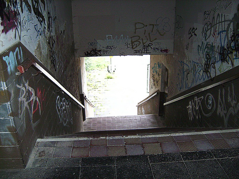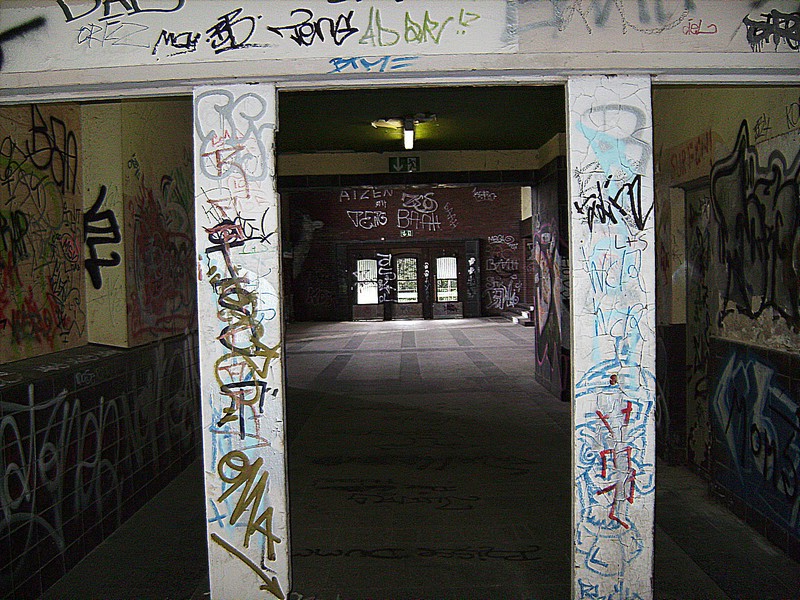 hier der zugemauerte Aufgang vom 2. Bahnsteig