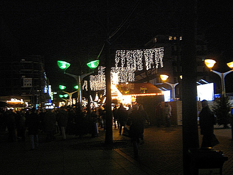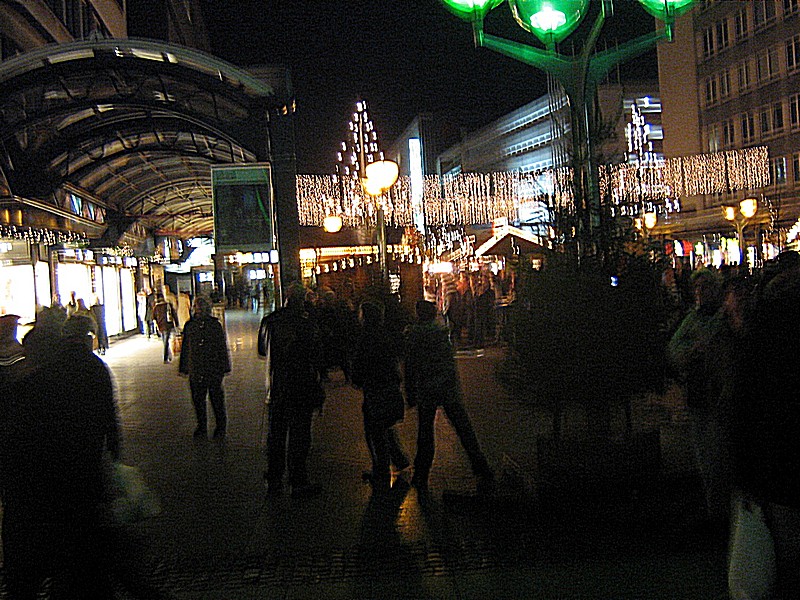 ![]() und der obere Eingang zum Weihnachtsmarkt, hinten rechts ist der Bahnhof. Leider ist das Foto recht unscharf |